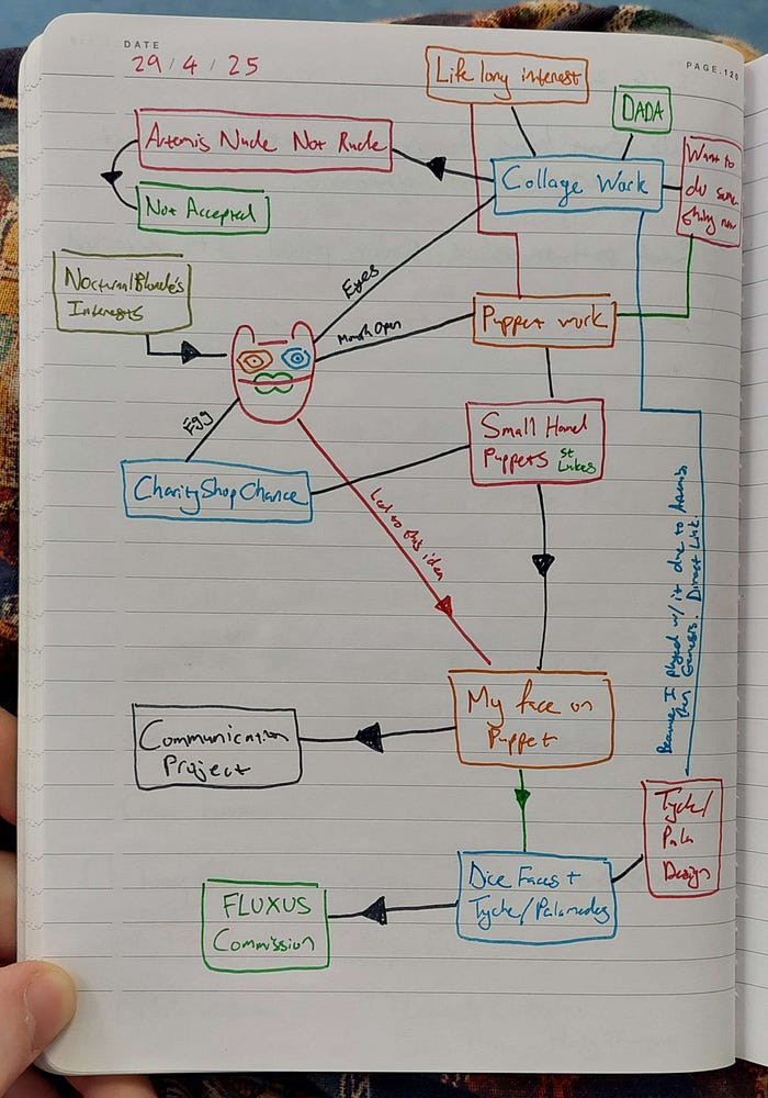 This resulted in me playing with DADA-esque collage work in ‘Genesis’, which was a lot of fun. In retrospect, I have realised that this creature which was made was a puppet.