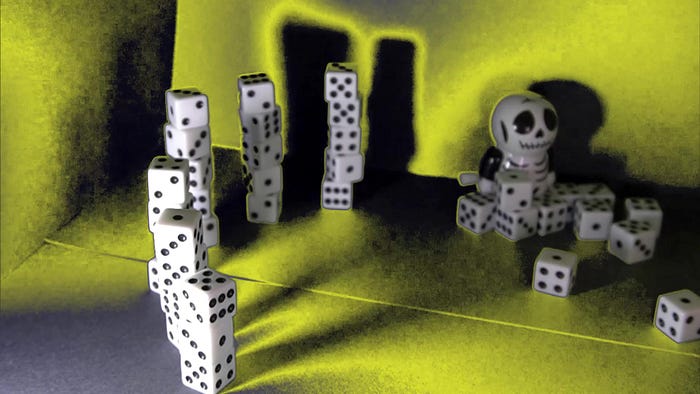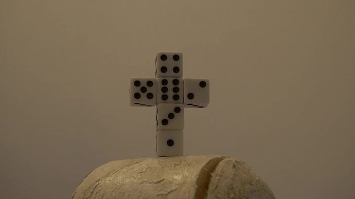The first scenes I filmed for this piece were the shots of the dice suspended in water. Other than being a pretty shot, I wanted to somehow covey the idea of falling or gravity. Due to me not having a high speed camera, this felt like a good middle ground.