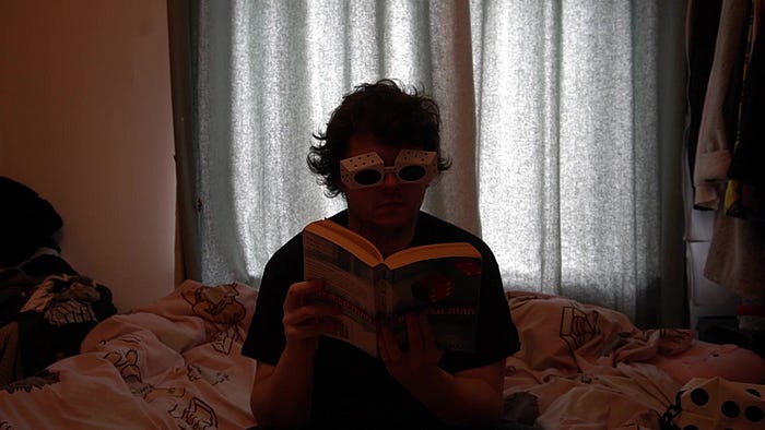 Louis: I met him at my universities anime society in the second year of my undergrad (2018/2019). He has helped in a few of my projects, appearing in ‘After Images (2)’, as a robot in ‘Tinguely Feeling’, and voicing my dog Toffee in ‘diaDOGue’. He did such a great job in terms of acting in this, he quickly became one of the central roles.