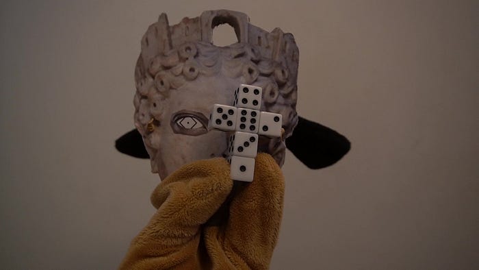 It was important to me that no language was present in the piece where I could avoid it. I wanted the film to be appreciated by anyone that went to see it in the museum in Greece. Adding chance to the interpretation of what the dice rolls mean was a part of it too. This in a way adds a tarot reading element to the roll — people see what they feel within the interpretation, a way to communicate with one’s self.