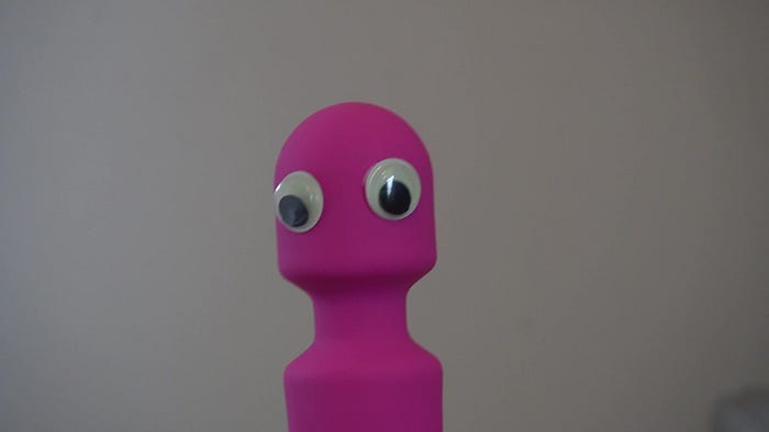 This scenario was about a bunch of technology which had gained sentience, holding an annual meeting to welcome new ‘systems’ into the fold. You can tell they are sentient, because they have googly eyes, obviously. It was being chaired by a Playstation One, with a camera, laundry machine, and crane game in attendance. The new member, a pink vibrator, is being introduced, which gets derailed by the camera making inappropriate remarks.