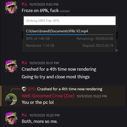 This project resulted in me learning something on the editing side of filmmaking. The file would not render at all. It froze whenever the prompts were being opened. I think it struggled with the chromakey and the number of colours, but that’s just an assumption on my end. I learnt that rendering via CPU is often better, but slower. The acceleration from the GPU breaks it. Very good to know for next time.