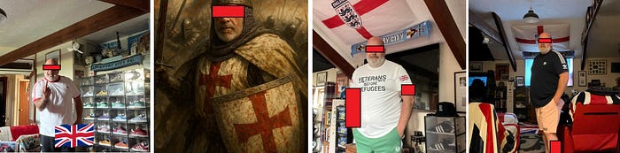 Going through some of the member’s pages on Facebook is some of the funniest viewing I have done. Some of them are complete caricatures. Several flags in one room. Sports memorabilia everywhere. Adidas covering their bodies and walls. Using AI to present themselves as saviours of the UK… Now notice here how I said, ‘some of them’, interesting innit?