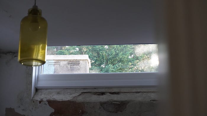 So firstly, we have a window in our upstairs passage that lets in some natural light. It is on a wall that has been giving us endless issues with damp. The joys of owning a home in the UK.