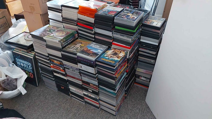 It got to the point where I knew I was not going to rewatch most of them, and since my wife and I had just bought our house, being able to enjoy the space seemed more appealing than having a mostly useless cube of plastic. So, I decided to donate them. The image above isn’t all of them either, as I had already removed a few boxes at that point.